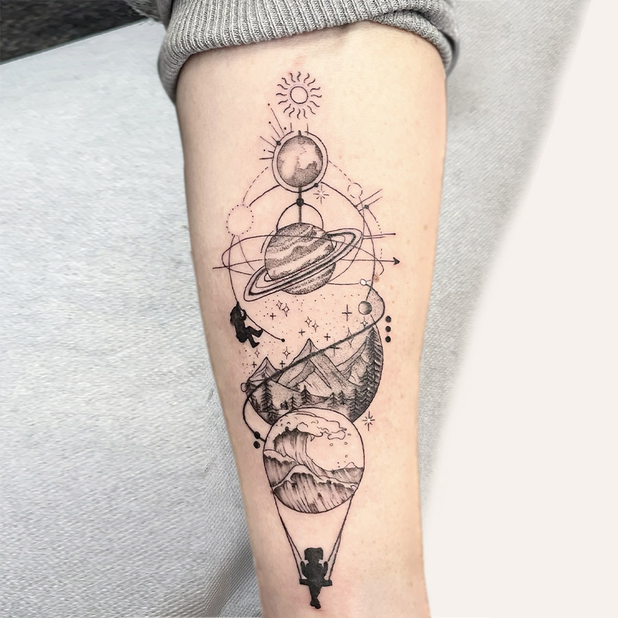 "C'était tellement cool que j'ai eu peur qu'il y ait rien après la cica tellement j'ai pas eu mal et j'ai pas vu le temps passer lol. Mais c'est bon, même après la pelée, le tatouage est toujours aussi beau. Merci !"